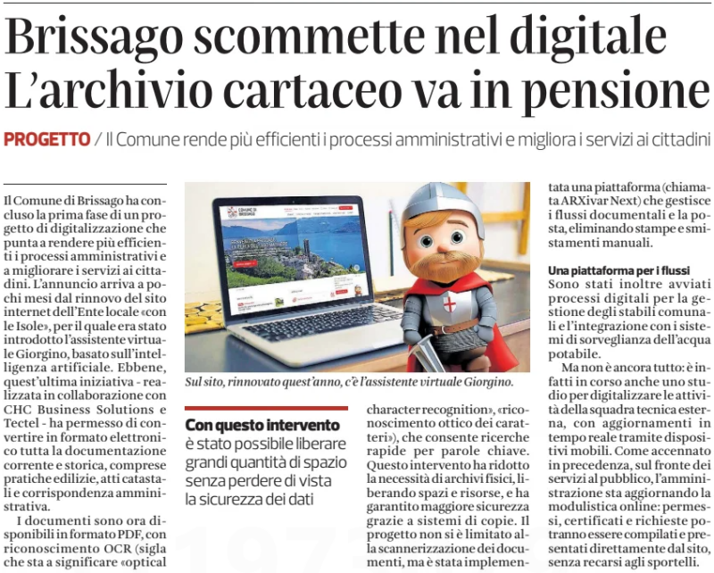 con CHC Business Solutions e Tectel - ha permesso di convertire in formato elettronico tutta la documentazione corrente e storica, comprese pratiche edilizie, atti catastali e corrispondenza amministrativa
